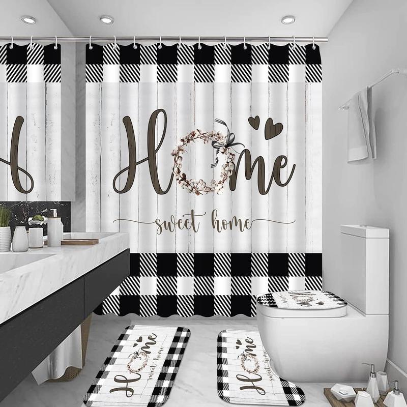 Share: https://decorinall.com/products/black-white-rustic-bathroom-set-shower-curtain-with-matching-rugs-toilet-mat