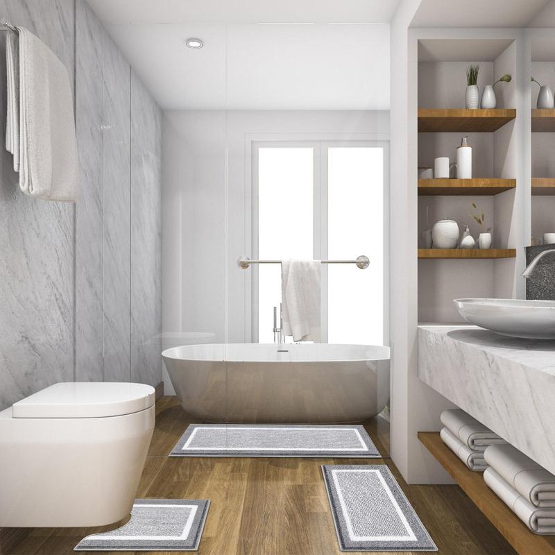 - Bathroom Rugs Sets 2 Piece: LOKHOM also provides 2 pieces bath mats for bathroom (18"x26"+18"x48") without U-Shaped rug which are also perfect for bathrooms, Kitchen, entrance indoor, washrooms, bedrooms, living rooms, spas, and wherever you need bathroom floor mats.
