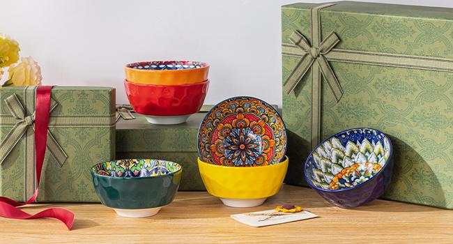 Vancasso bohemian style Bowls Set boast enchanting and intricate designs that capture the free-spirited essence of Bohemian culture.The lively colors and artistic patterns evoke a sense of joy and positivity, enhancing your dining experience with a burst of energy and happiness.
